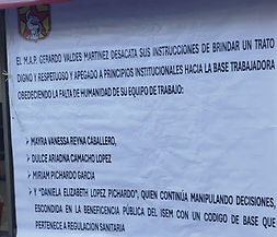 De igual forma, los empleados exigen la salida de Gerardo Valdez Martínez, por la presión que ejerce sobre ellos, bajo la amenaza de despedirlos si no cubren el monto que les solicita.
